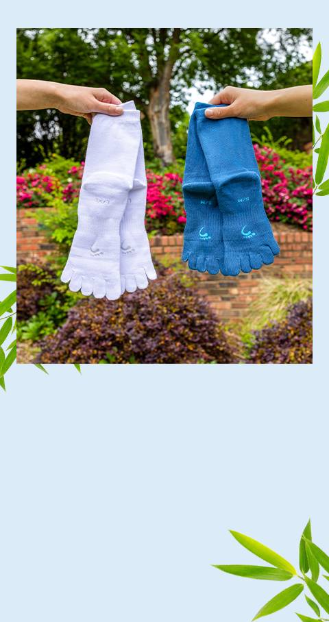 We are revolutionizing how people treat their feet. Our one-of-a-kind five-toe design with arch support + added padding means these are the most comfortable socks on earth. We use high-quality, environmentally friendly bamboo material + five-toe separation so your feet smell less while functionality is simultaneously improved by actively engaging each toe separately. So when you’re looking for barefoot socks that feel more plush and comfortable than regular socks, we’re the right choice. Plus, our tree planting initiative reduces your carbon footprint!
