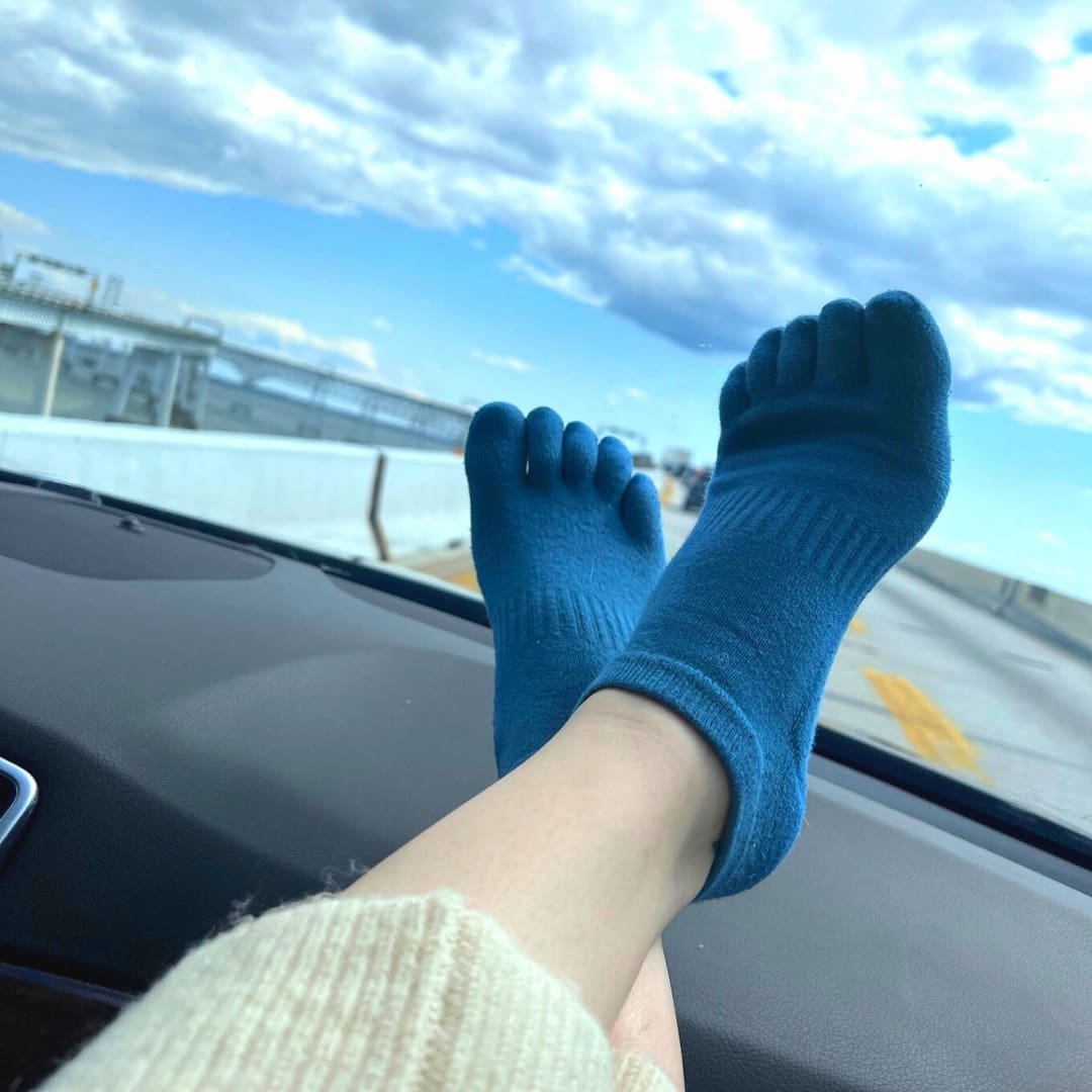 It's easier to grip things with gloves on your hands than mittens, right? THEN WHY WOULD YOU WEAR MITTENS ON YOUR FEET?? Your toes need to grip the earth, just like your hands grip objects, to maximize functionality and improve how your foot works. This, in turn, better supports your entire body’s alignment. Bamboo no-show socks also have a woven-in arch support + extra padding in all of our models. This means your feet will feel free but snugly comfortable. Lastly, we use only bamboo material so each toe is snuggly wrapped in the best moisture-wicking (and most environment-friendly!) material money can buy. So blisters, toe-on-toe frictions, and nasty bacterial smells coming from the crevices between your toes are gone when you wear socks with individual toes.